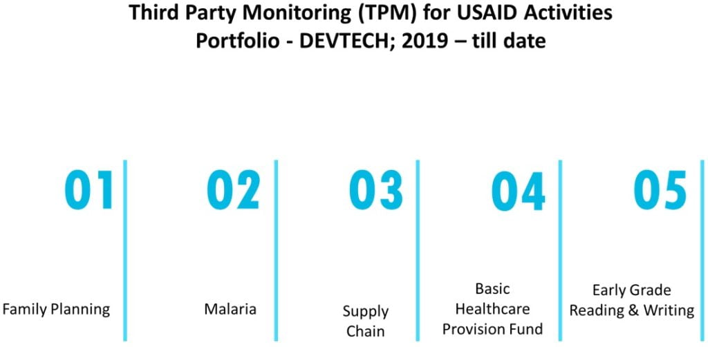 DevTech Inc. contracted Preston Associates to conduct series of Third Party Field Based Monitoring (FBM) in Ebonyi, Kano, Niger, Oyo, Bauchi, FCT, Kebbi, Plateau, Akwa Ibom, Abia, Osun, Borno and Yobe States on several human development USAID funded Education, and Health Population & Nutrition (HPN) projects in Nigeria. The TPM activities program focus areas include; Family Planning, Malaria, Supply Chain, Basic Health Care Provision Fund (BHCPF) and Early Grade Reading & Writing. The Third Party Monitoring (TPM) approach allows USAID to monitor, evaluate and learn from projects that are located in non-permissive environments. On average, each TPM activity spans between 10 to 20 working days, and methods employed for data collection include document review, Key Informant Interview (KIIs) and Focus Group Discussions (FGDs) with Implementing Partners, Government Officials and Community Members. Key findings and recommendations are provided by Preston Associates in an activity report at the end of each TPM.
